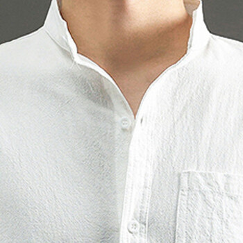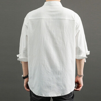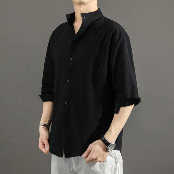 短袖衬衫>>半双 短袖衬衫男2020夏季新款宽松大码中国风亚麻衬衣薄款男士休闲七分袖棉麻寸衫yym 黑色 M (建议100-115斤)