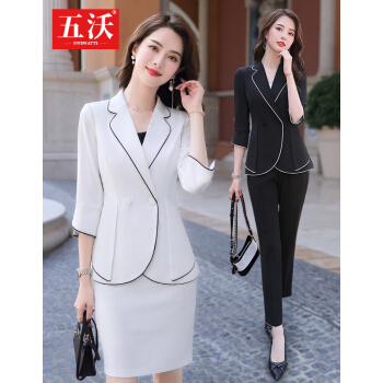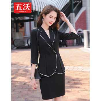 五沃 职业装女装套装小西装女神范总裁时尚气质白领商务正装工作服 单件黑色西装 L
