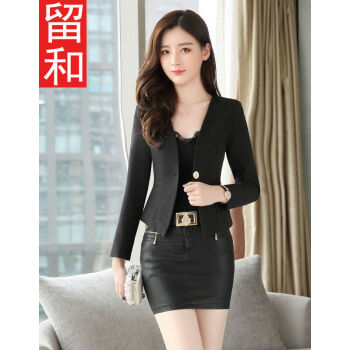 留和 小西装女2020年春秋季一粒扣短外套纯色修身职业女装上衣百搭外套工装X1196 黑色 L