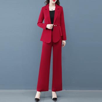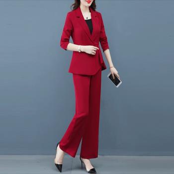 玫姿恋小西装女外套通勤职业装女装套装西服职业装2020秋季新品女装韩版时尚气质网红女神范两件套202 202酒红色 L |