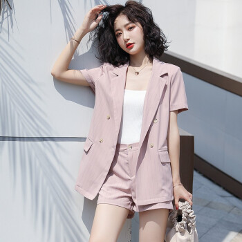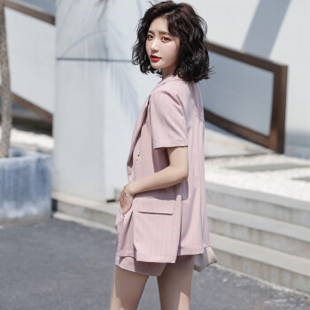 锦绣安娜 小西装女夏季2020年新款韩版气质时尚休闲短裤套装洋气西服两件套K2038 粉色 M