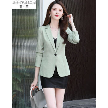 简草 小西装女2020秋季新款韩版时尚潮流舒适气质修身纯色一粒扣小西服外套女X6005 绿色 M