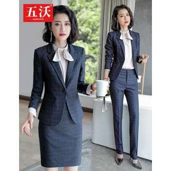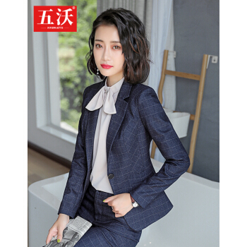 五沃 职业装女装套装小西装女时尚修身工作服英伦风ol气质商务正装格子西服 单件外套(备注颜色) L