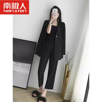 南极人轻奢高端女装 chic网红小西装外套女韩版小香风赫本风女神气质职业西服两件套装 黑色套装(配腰带) S |