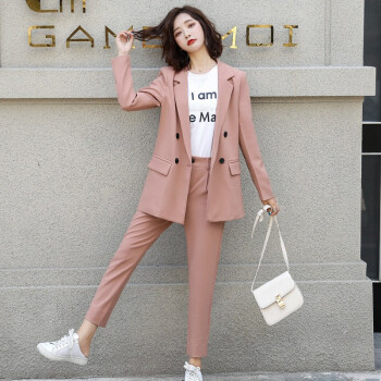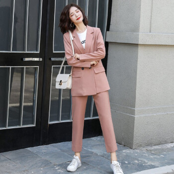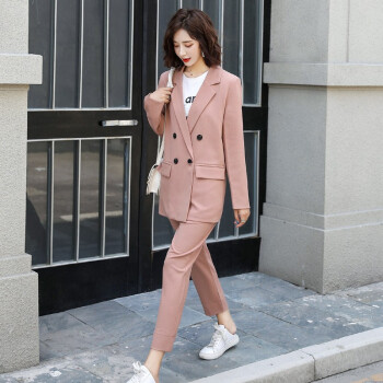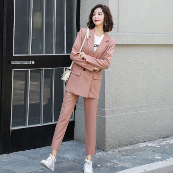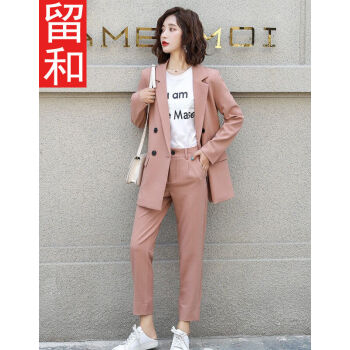 留和 小西装外套女2020秋季新品休闲职业装女装套装时尚款修身小个子工装外套X9911 粉色 L