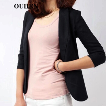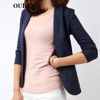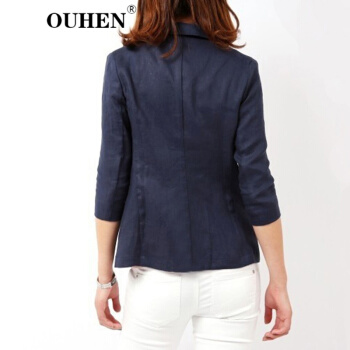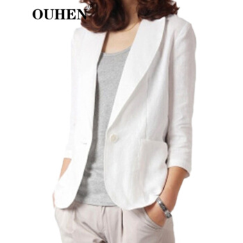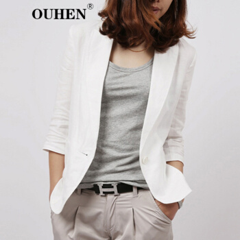 小西装>>OUHEN高端品牌女装 亚麻小西装外套女2020夏季新款经典韩版休闲棉麻白色西服薄款上衣外套 白色 M