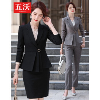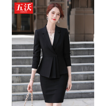 五沃 职业装女装套装小西装女神范总裁商务时尚气质大学生面试修身正装工作服 单件黑色外套 L