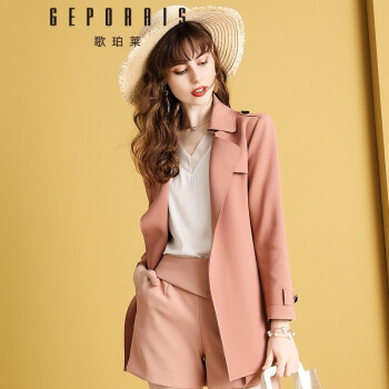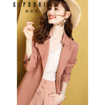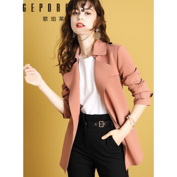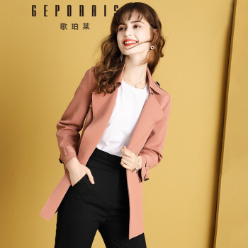 歌珀莱品牌女装中长款风衣外套女2020年新款秋装气质英伦风小个子大衣外套 烟粉色 S
