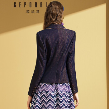 歌珀莱品牌女装时尚休闲西装外套2020秋季新款复古亮丝西服女上衣 深蓝色 S