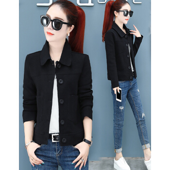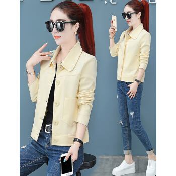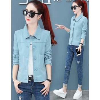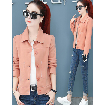 婪澈外套女2020春秋新款女装潮韩版宽松秋短款夹克工装女士小香风女上衣 粉桔 L