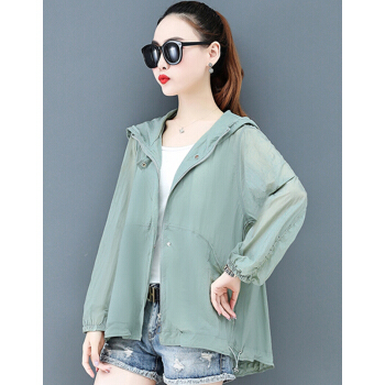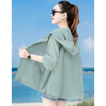 婪澈防晒衣衫女2020女装夏季新款短外套女韩版显瘦小众百搭薄款开衫外套女 豆绿色 请拍正确尺码