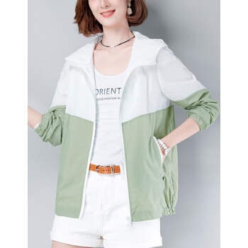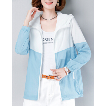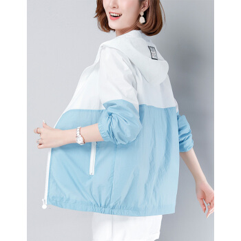 婪澈夏季妈妈防晒服长袖2020新款韩版洋气中年防晒衣女大码短款外套薄 天蓝色 请拍正确尺码