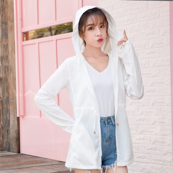 短外套>>南极人防晒衣女中长款皮肤衣2020夏季新款防晒服薄款修身时尚bf短外套女装 白色 L