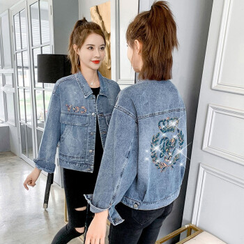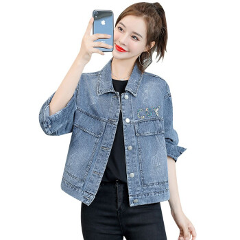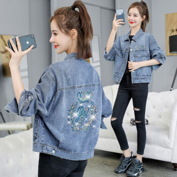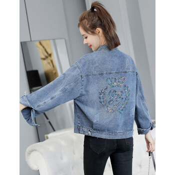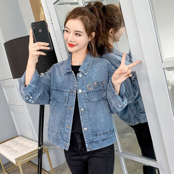 淑蔓婷牛仔外套女春秋短款2020新款港味学生复古韩版宽松亮片牛仔衣夹克 8770图片色 M