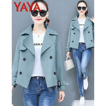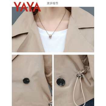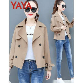 鸭鸭服饰yaya小个子外套女春秋季2020新款夹克休闲上衣春秋装百搭短款女士风衣 卡其色 L