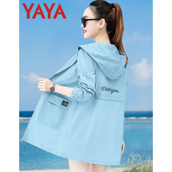 鸭鸭服饰yaya防晒衣女2020新款女装夏季上衣女韩版百搭连帽短外套女薄款洋气薄款外套女ins潮 天蓝色 请选择正确尺码 |