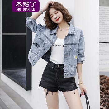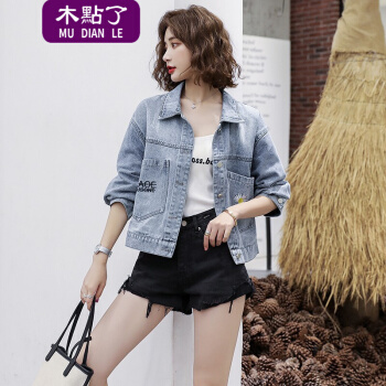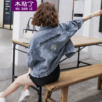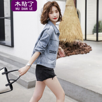 木點了 牛仔外套女2020秋新款时尚潮流舒适长袖宽松休闲气质短外套牛仔衣女2081A 图片色 M