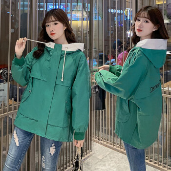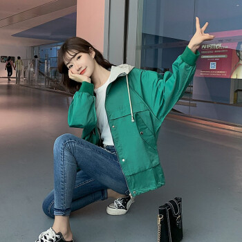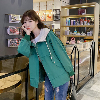 萱蓝外套女春秋装2020韩版新品宽松百搭森系短款棒球服休闲连帽工装上衣风衣潮2307 米色 L