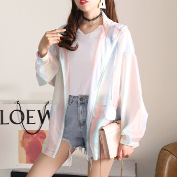南极人 防晒衣女长袖夏季2020新品韩版洋气薄外套防晒服宽松显瘦百搭渐变色带帽空调衫 N1-JMD017-506-白色 均码