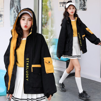 轩薇奴短外套女2020秋季新款女装韩版时尚大码宽松显瘦连帽工装风衣港味ins棒球服女X2181 黄色 M
