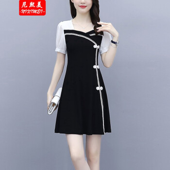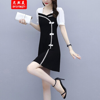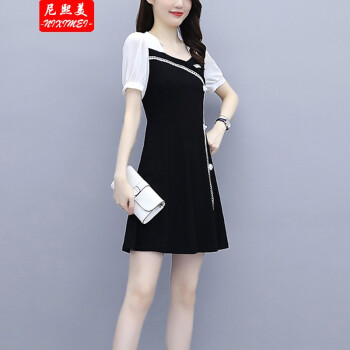 尼熙美 大码女装胖mm2020夏装新款胖妹妹气质宽松显瘦遮肚子小黑裙加肥加大小香风旗袍遮肉连衣裙 黑色 3XL 建议145-160斤 |