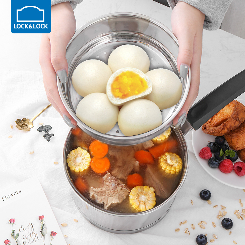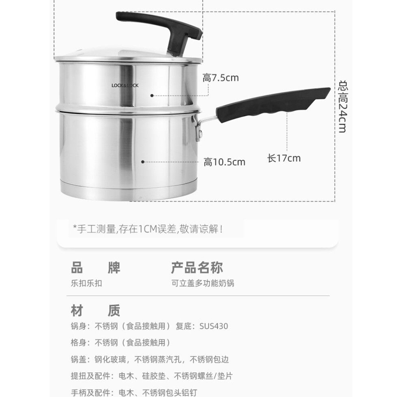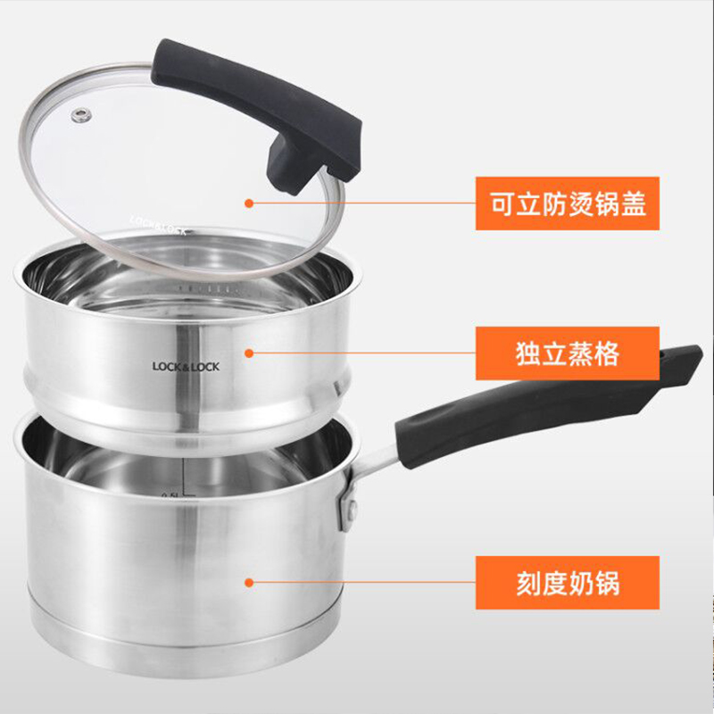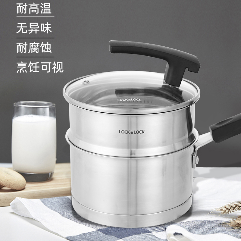 18cm可立盖多功能奶锅304不锈钢辅食锅加厚二层蒸锅【304不锈钢/不锈钢】