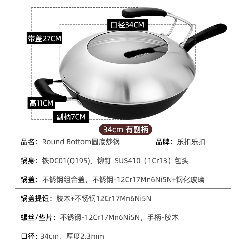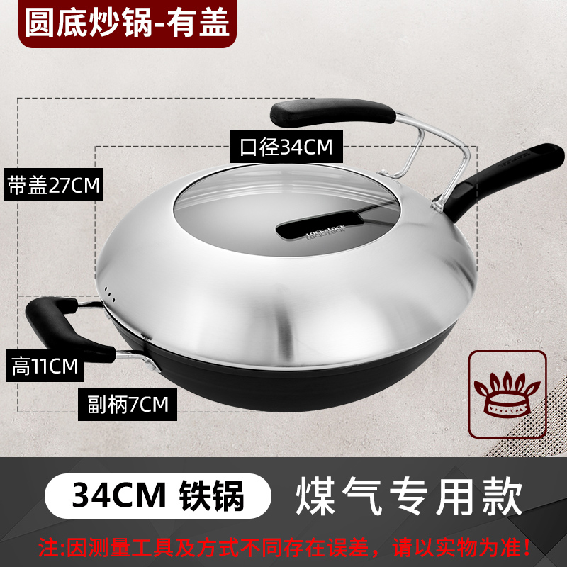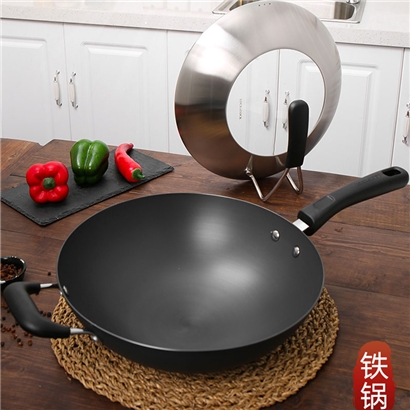 家用铁锅炒锅煤气灶无涂层铁锅炒菜锅34CM【铁/34CM】
