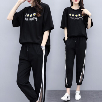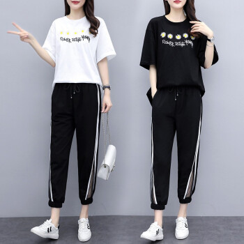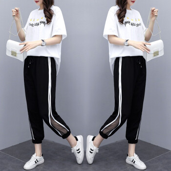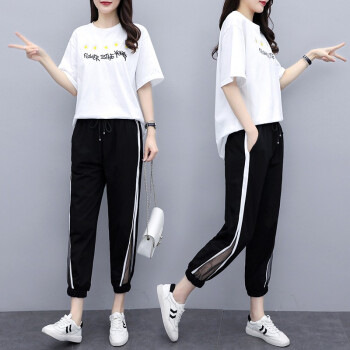 大码女装>>睡妍 大码女装套装女夏2020夏季新品宽松显瘦加肥加大码胖mm短袖T恤九分裤休闲运动套装两件套女夏 白色 XXL(120-140左右)