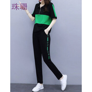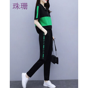 珠珊大码卫衣套装女2020休闲裤子女时尚新款上衣女装运动长裤洋气秋两件套 6109黑色 L(建议95-110斤左右)