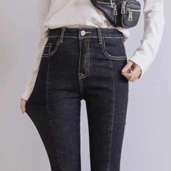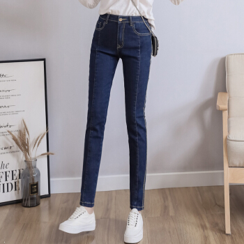 澳雅婷大码牛仔裤女胖mm200斤胖妹妹秋装2020年新款弹力显瘦修身高腰小脚长裤子9019 深蓝色 4XL 建议您170-190斤 |