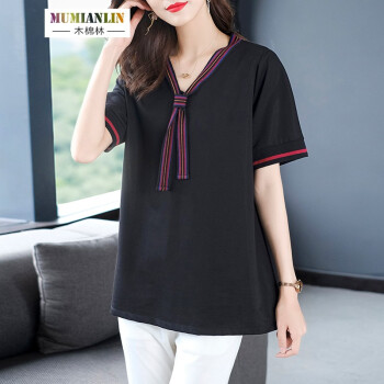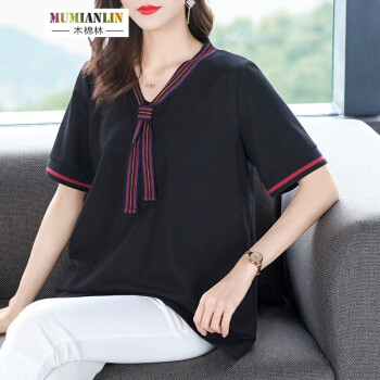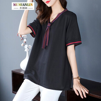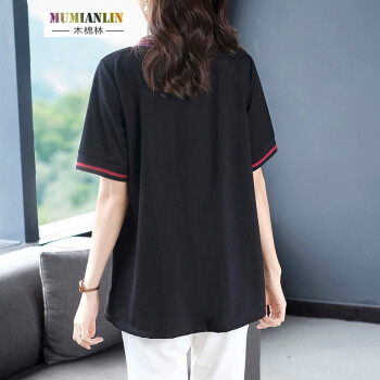 大码女装>>木棉林大码女装显瘦减龄遮肉t恤2020年夏装新款胖mm宽松洋气中长款短袖上衣H202800 黑色 3XL建议160-180斤