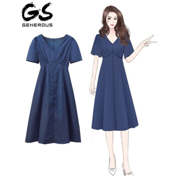 歌诺瑞丝大码女装胖mm连衣裙2020夏装新款文艺宽松显瘦复古休闲气质减龄韩版遮肚子洋气中长裙 蓝色 XL 推荐115-130斤