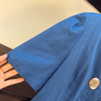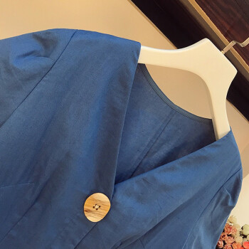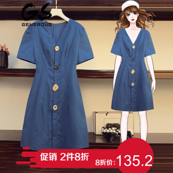 歌诺瑞丝大码女装胖mm连衣裙2020夏装新款文艺宽松显瘦休闲气质减龄韩版遮肚子V领中长款裙子 蓝色 XL 推荐120-140斤