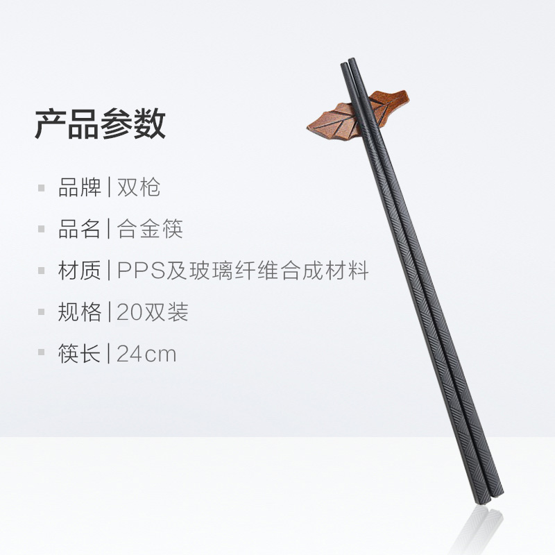 双枪 无漆无蜡不锈纯色合金 20双装【pps+玻璃纤维/黑色】