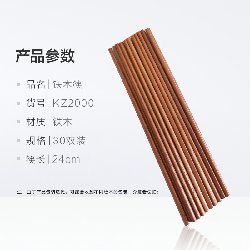 双枪 天然家用铁木筷30双装【铁木/木原色】