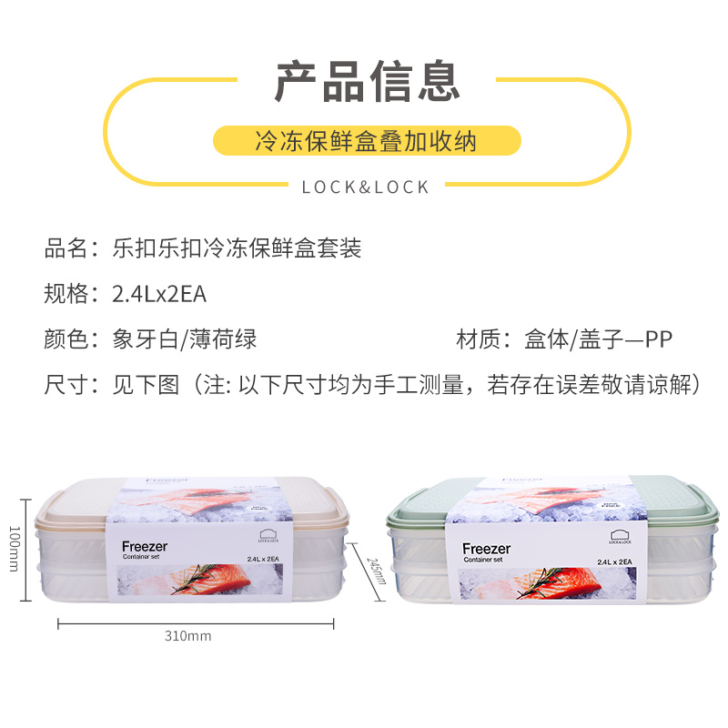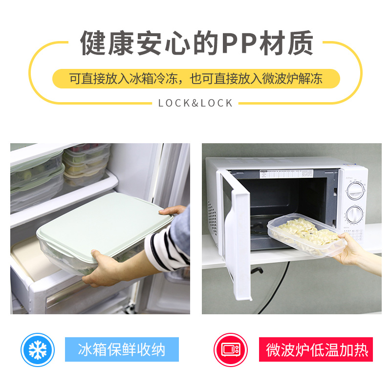 (买就送乐扣原装保鲜膜)2400ML*2 乐扣乐扣密封保鲜盒冰箱冷冻分隔饺子盒【塑料/颜色自选】