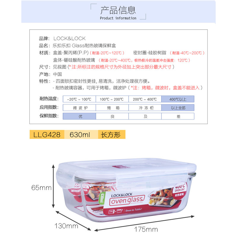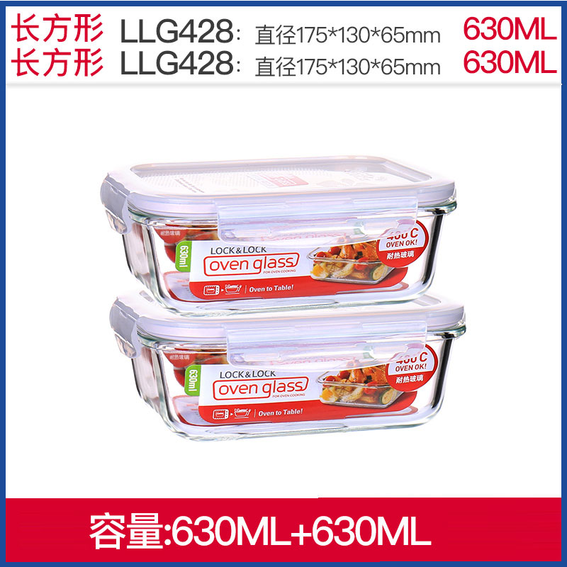 耐热玻璃保鲜盒微波炉适用饭盒630ML*2【玻璃/透明】