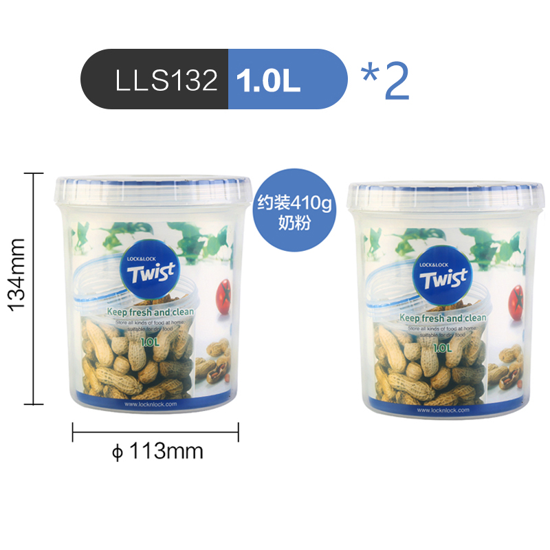 圆形塑料保鲜盒两只装 1L*2【塑料/透明】