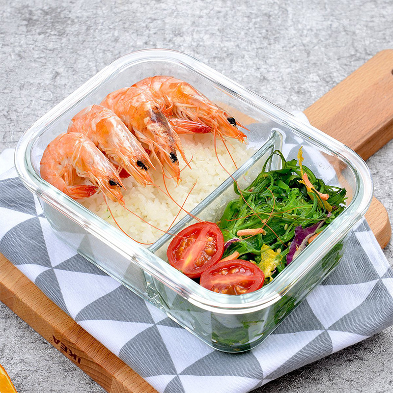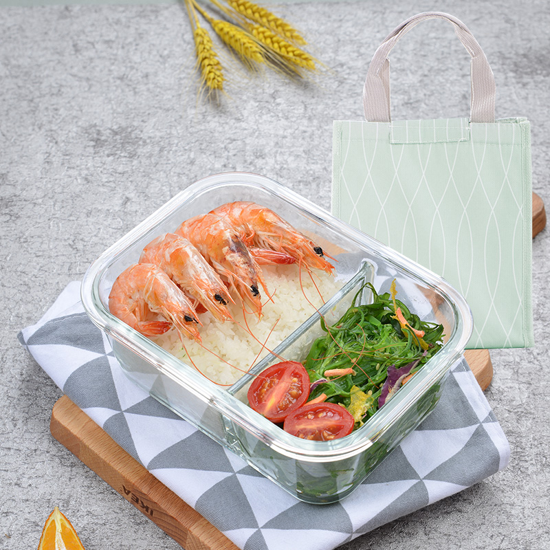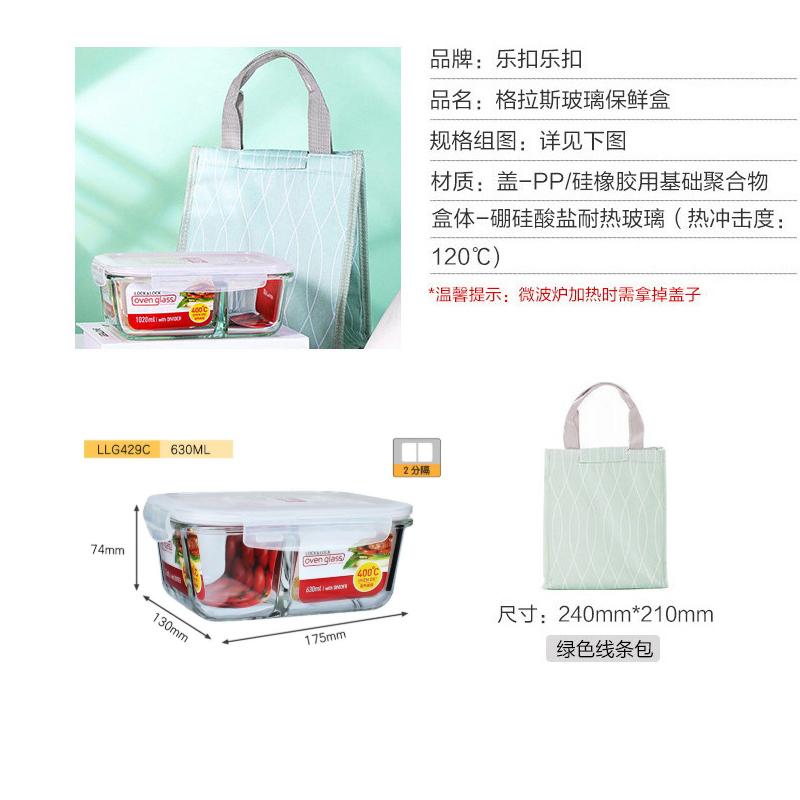 玻璃饭盒分隔耐热微波炉长方形玻璃密封保鲜盒 送时尚便当包【玻璃/透明】