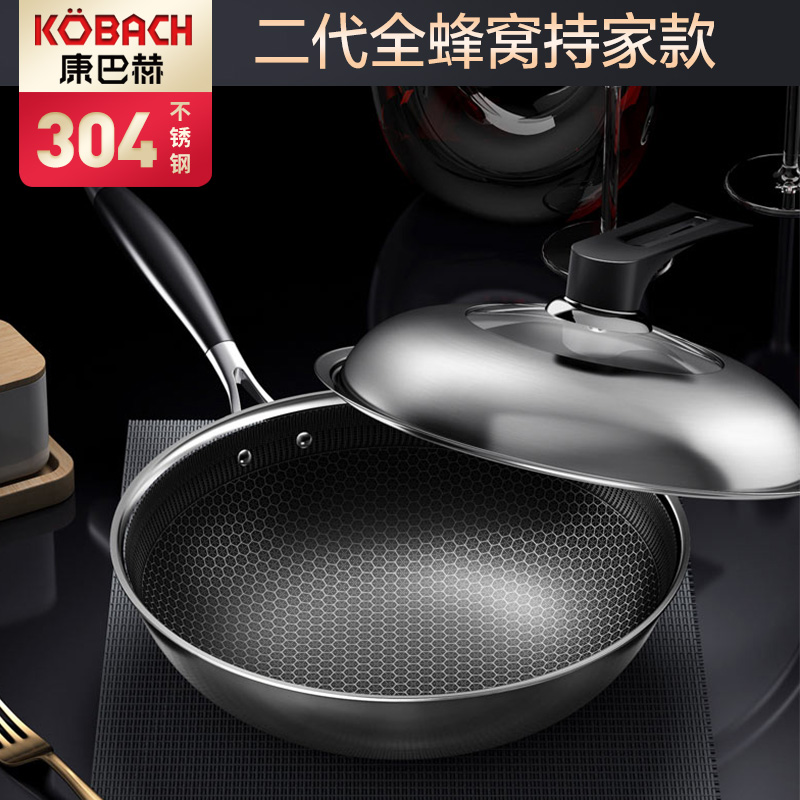 康巴赫二代系列持家款蜂巢304炒锅【送钢铲+钢勺!】【304不锈钢/银色】