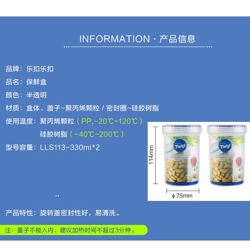 圆形塑料保鲜盒两只装 330ML*2【塑料/透明】
