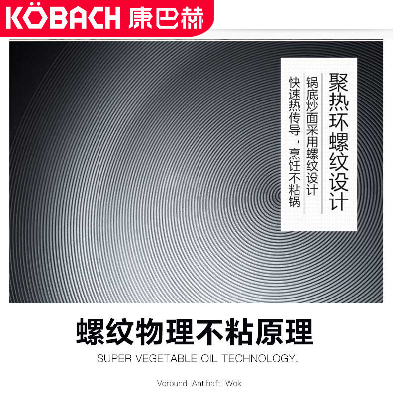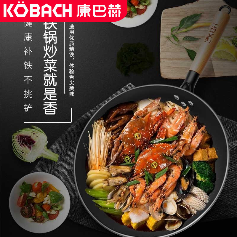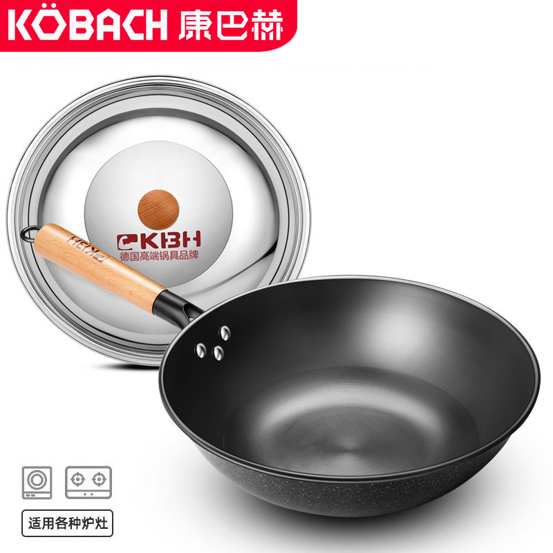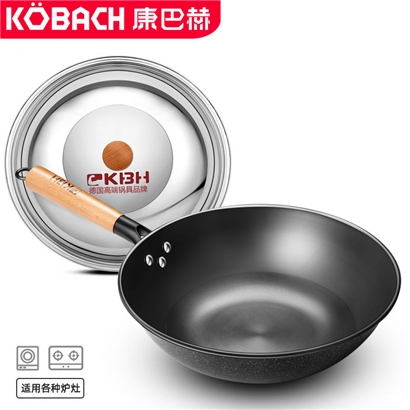 康巴赫炒锅32cm无涂层精制铸铁炒菜锅【铸铁/黑色】