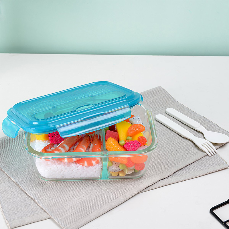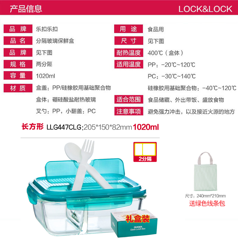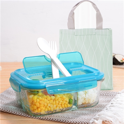 保鲜盒玻璃饭盒分隔便当盒微波炉专用碗加热上班族长方形 送时尚便当包【玻璃/透明】