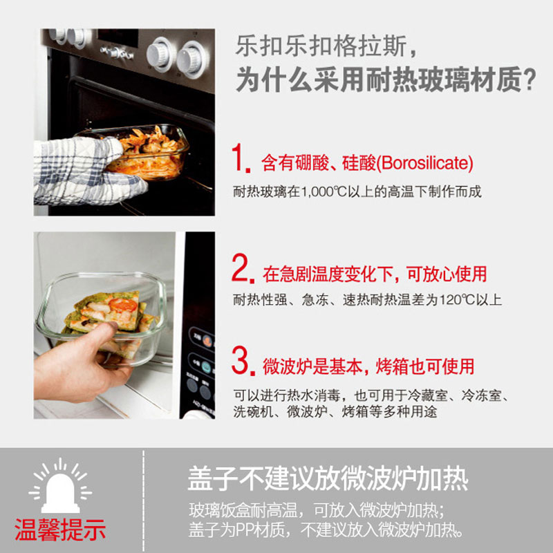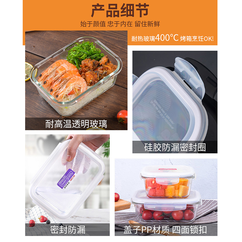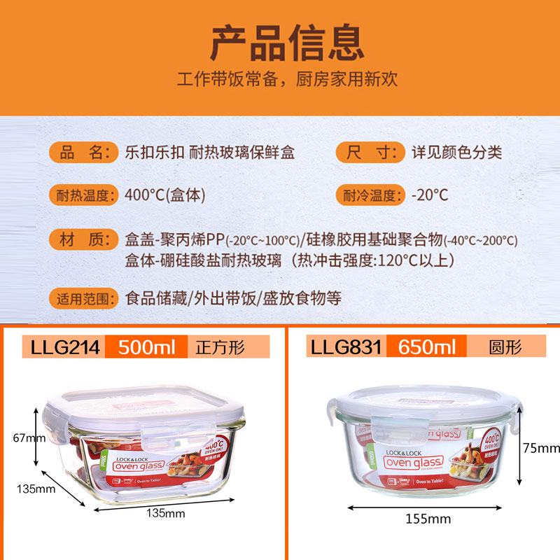 耐热玻璃保鲜盒微波炉适用饭盒500ML+650ML【玻璃/透明】