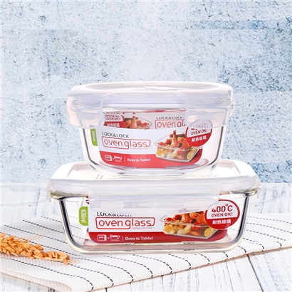 耐热玻璃保鲜盒微波炉适用饭盒630ML+380ML【玻璃/透明】