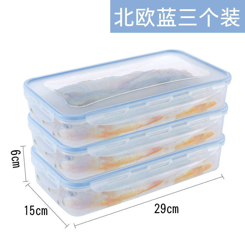 可沥水长方形保鲜盒3个装【pp(食具材质)/蓝色】