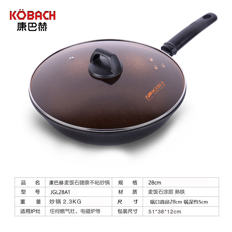 康巴赫煎锅不粘锅麦饭石平底锅28cm【麦饭石/灰色】