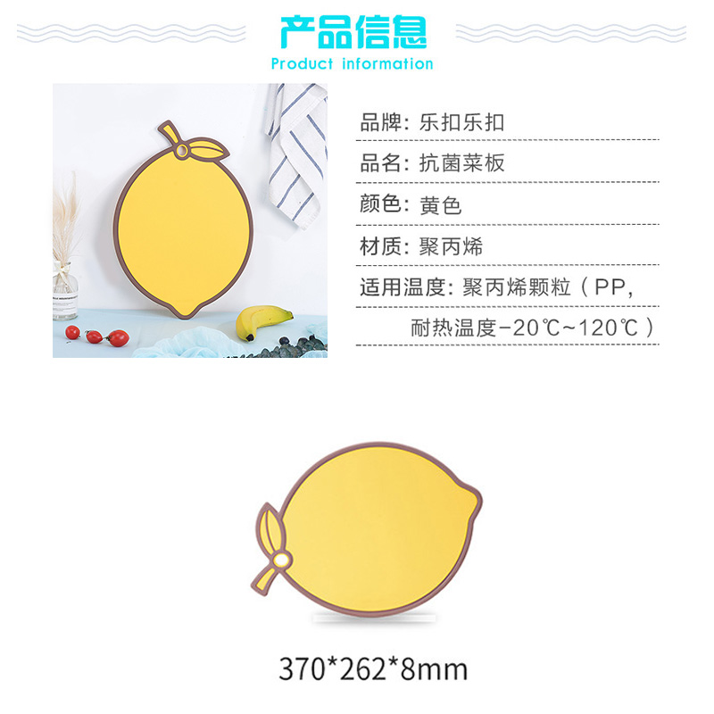 创意卡通家用塑料抗菌砧板水果辅食砧板切菜板370*262*8mm【塑料/黄色柠檬】