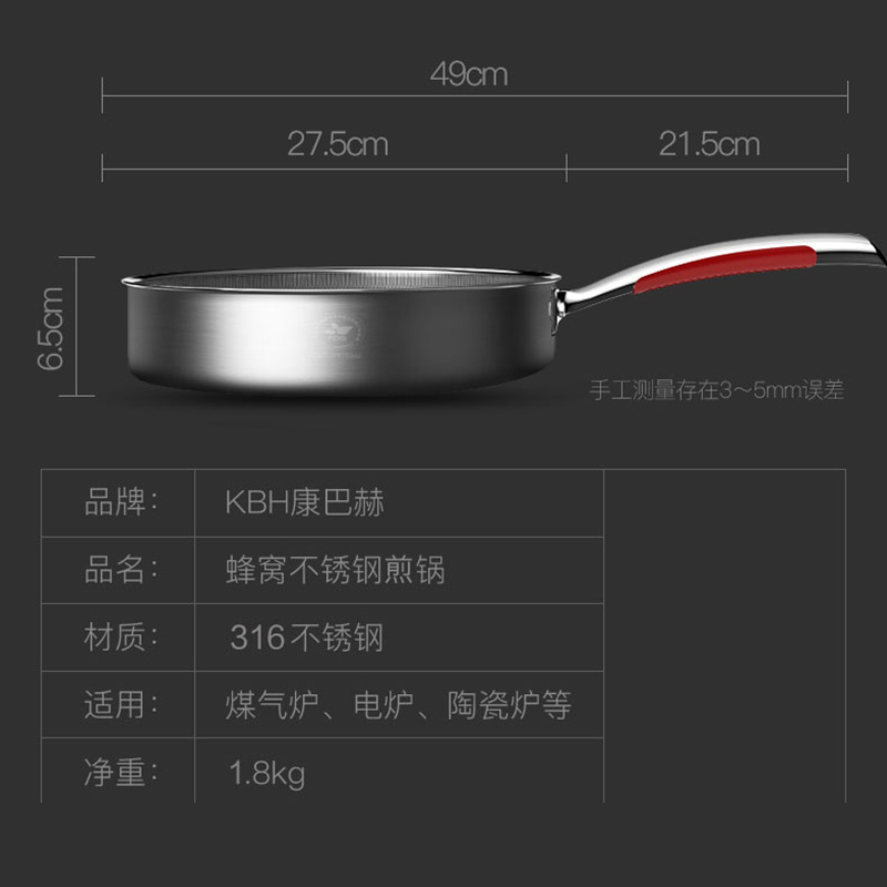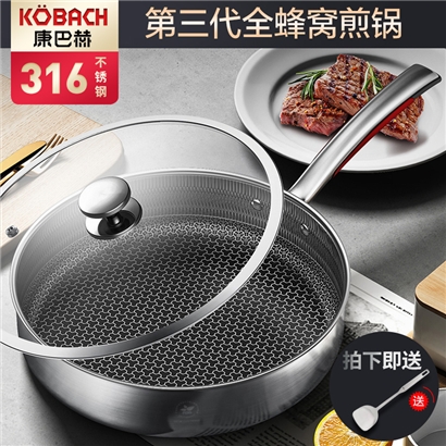 康巴赫三代蜂巢316不锈钢煎锅【赠钢铲】【316不锈钢/银色】