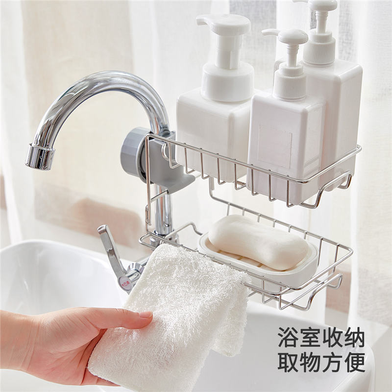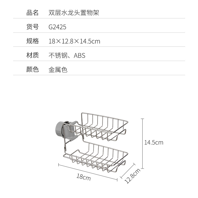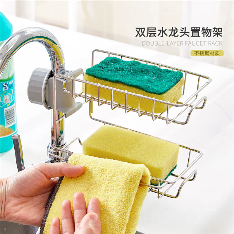 厨房卫生间收纳双层水龙头置物架【不锈钢 ABS/图片色】